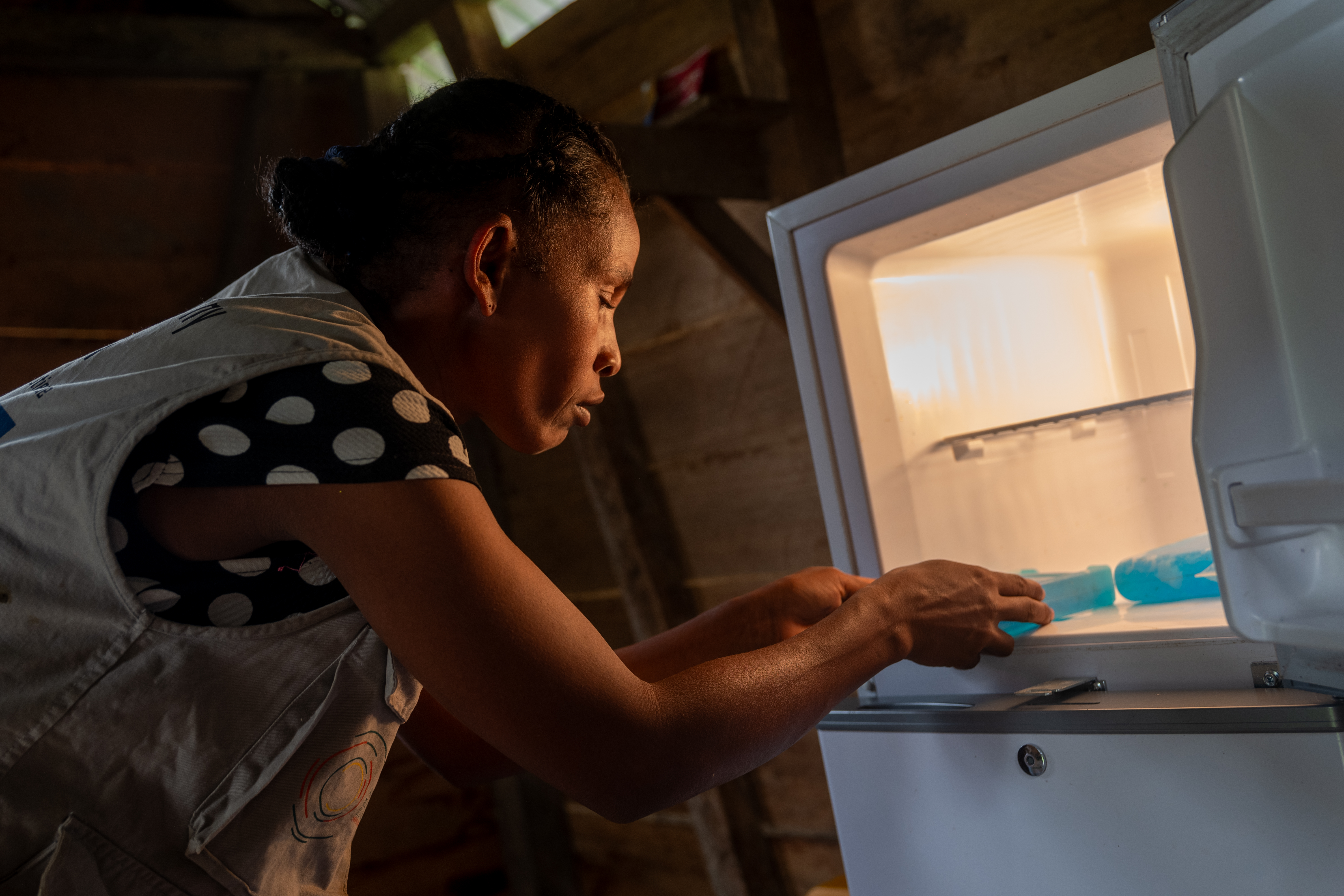 Dans ce cadre, des kiosques vétérinaires équipés en frigos solaires ont été installés dans les COBA partenaires afin d’assurer une bonne conservation des vaccins et de garantir la disponibilité de médicaments vétérinaires essentiels au niveau des sites d’intervention. Par ailleurs, des vaccinateurs villageois issus des COBA bénéficient de formations sur la zootechnie, la santé animale de base et les bonnes pratiques d’administration des vaccins. Des campagnes de vaccination sont organisées tous les trois mois par les vaccinateurs villageois pour protéger les volailles contre les principales maladies contagieuses. Les éleveurs peuvent ainsi accéder à des vaccins à un coût abordable, ce qui favorise la pérennité du service et l’amélioration durable de la santé de leurs élevages.